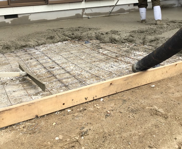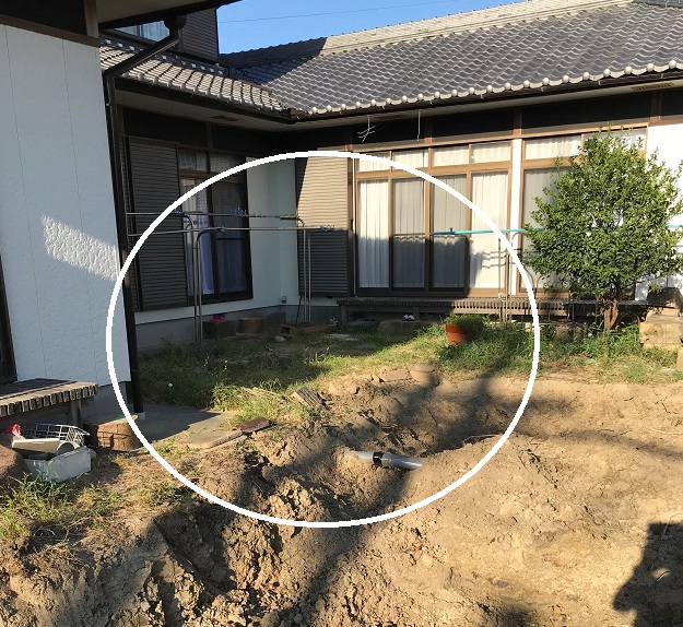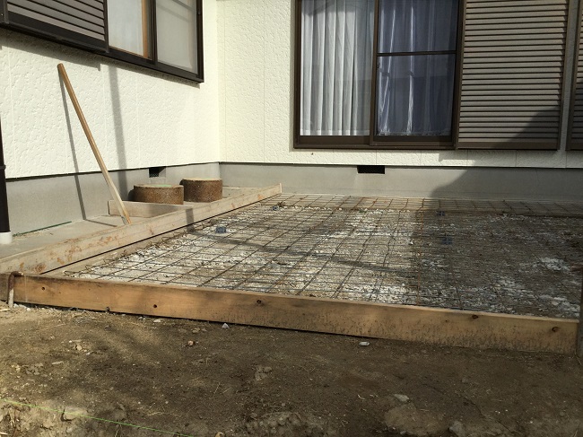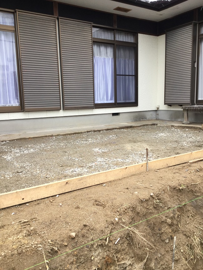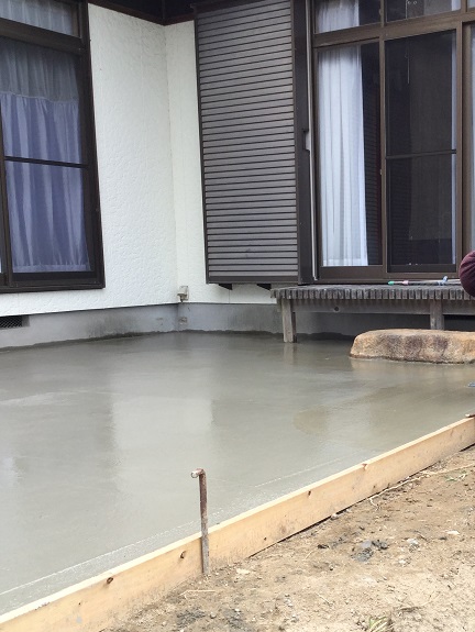庭のこのスペースに土間打ちし