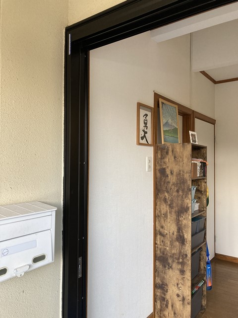 元々の玄関ドアの枠組みに新たな枠組みをつけて