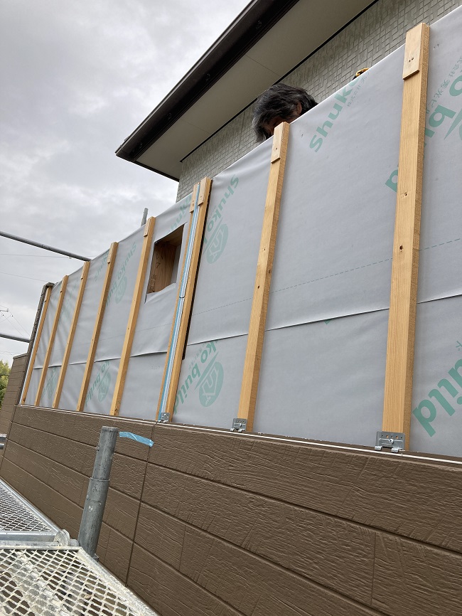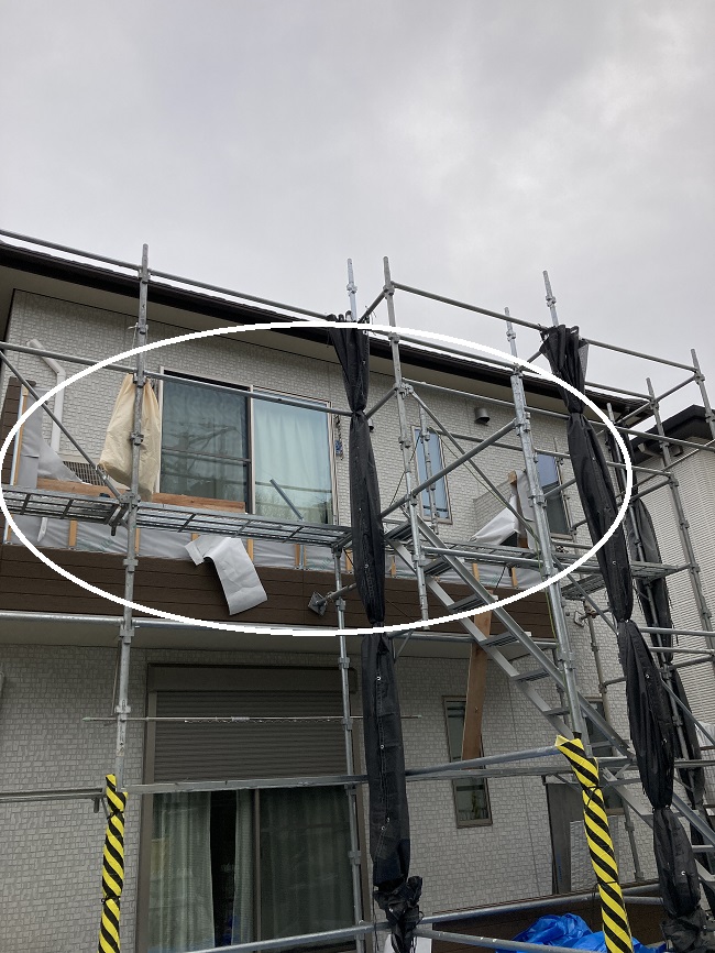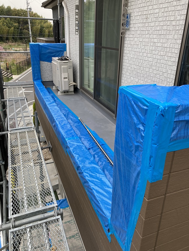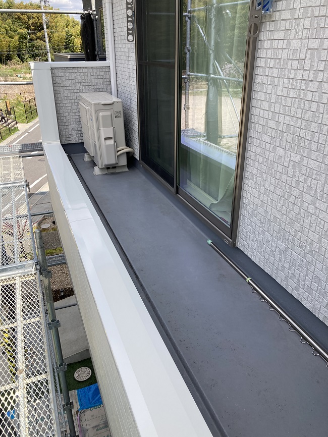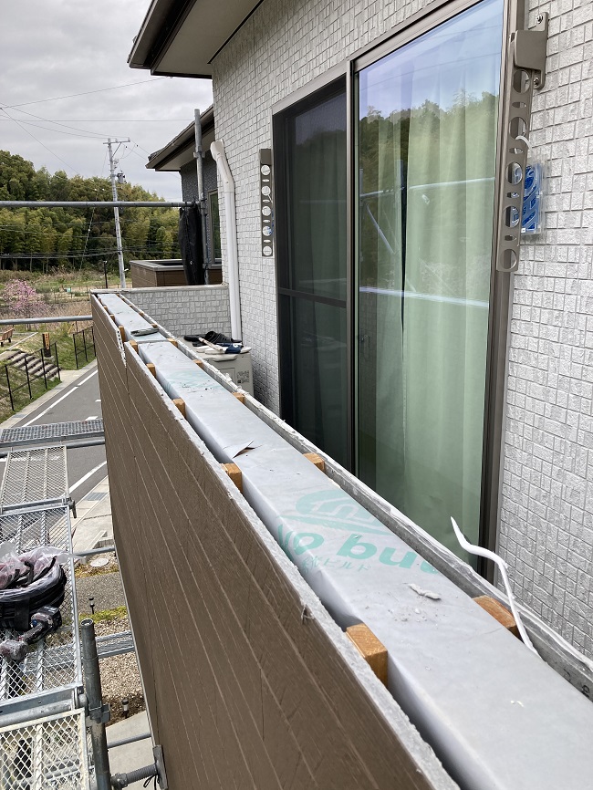 解体部分にアルミ笠木を取り付けて既存バルコニー