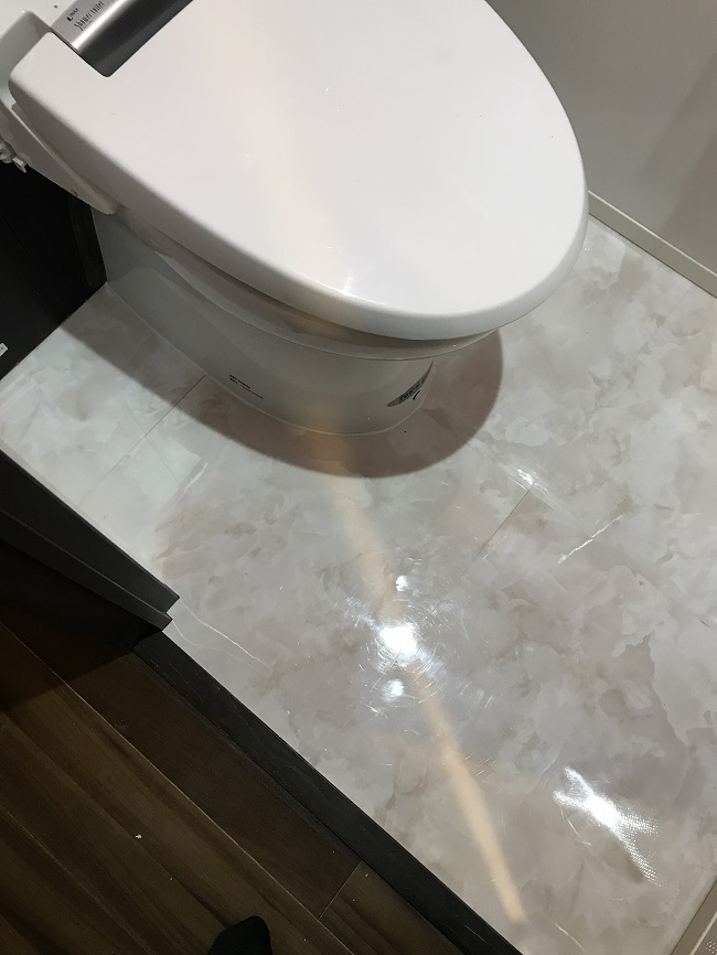 床には、クッションフロアではなくフロアタイルを敷設しました。