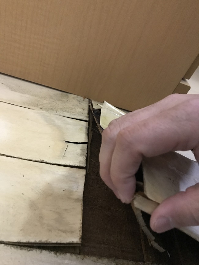 ↑今回は、腐食部を部分的に剥がして床下地を補強し