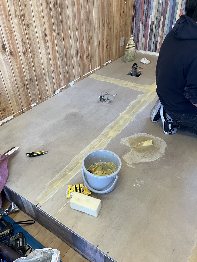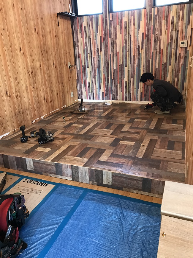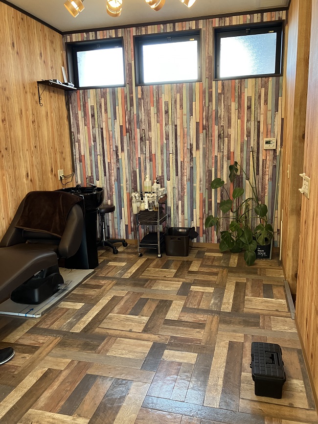 ↑床補強+敷設のため、既設のシャンプー台は一旦外し