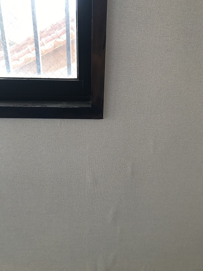 ※画像にクロスの膨らみが見られますが、異常や施工不良ではありません。クロスを貼った際、糊の水分がある為に出る現象です。乾いてくると同時に膨らみは無くなります。