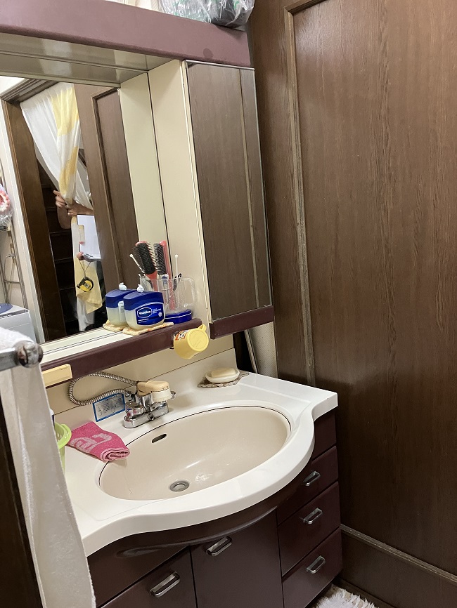 在来浴槽からシステムバスルームへリフォームするにあたり、壁付けだった既設の物を撤去し、