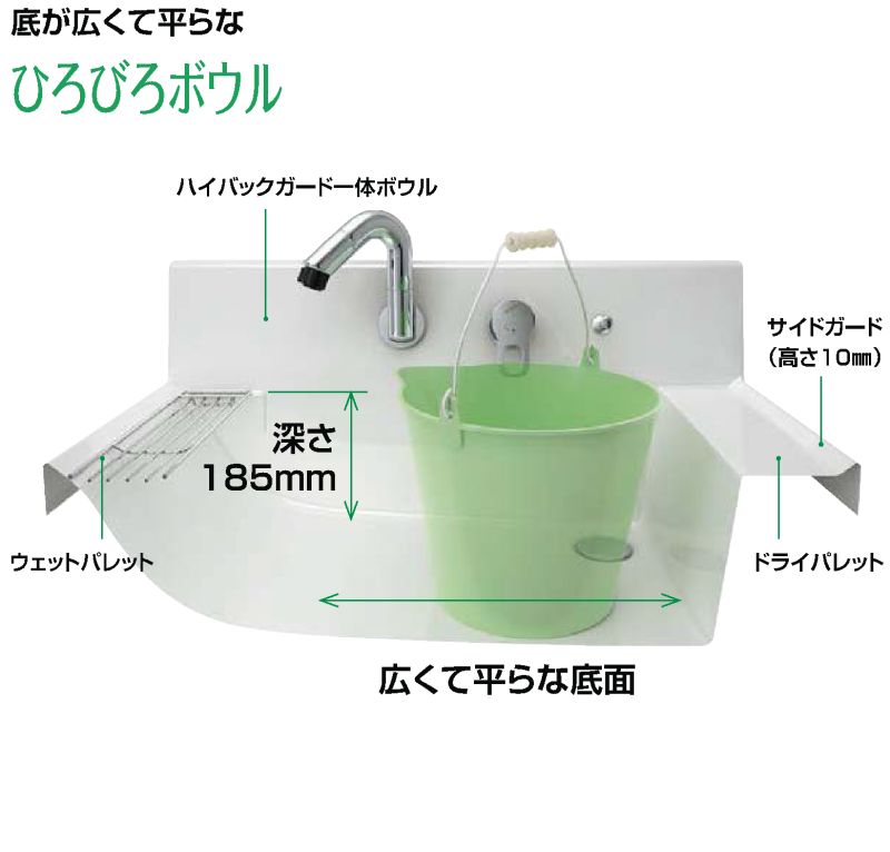 またハイバック一体ボウルに壁付水栓なので、つなぎ目や凹凸がなくお手入れが簡単です![]()