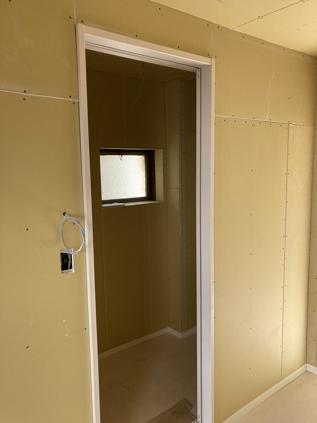 ↑下地完成です。サニタリーへの出入り口も新しくなりました。まるで新築みたいです![]()