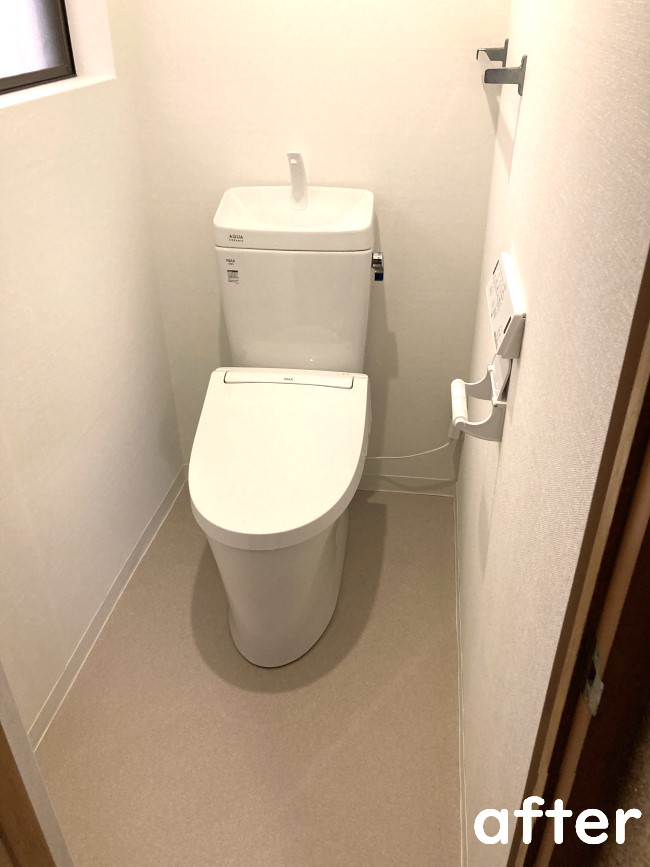シンプルな類似系のカラーで統一し、飽きない落ち着きのあるトイレ空間になりました