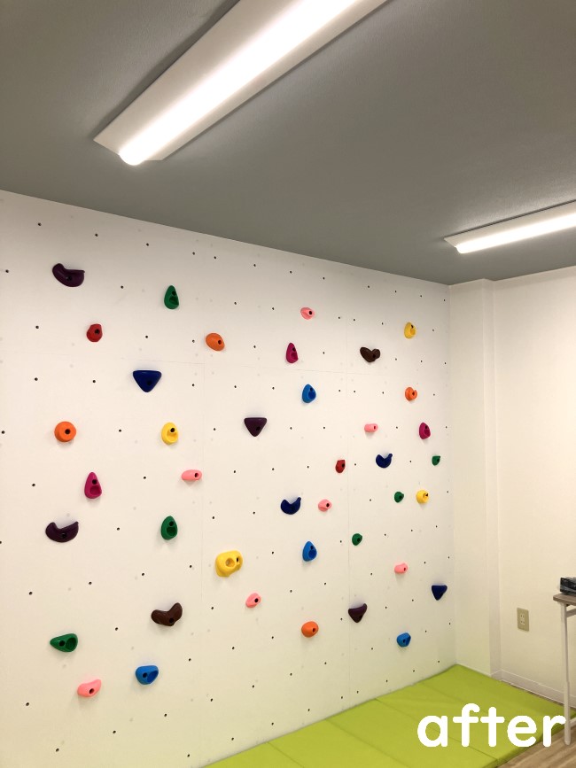 壁一面にボルダリングボードを設置し、好きな場所にホールドが付けられます
