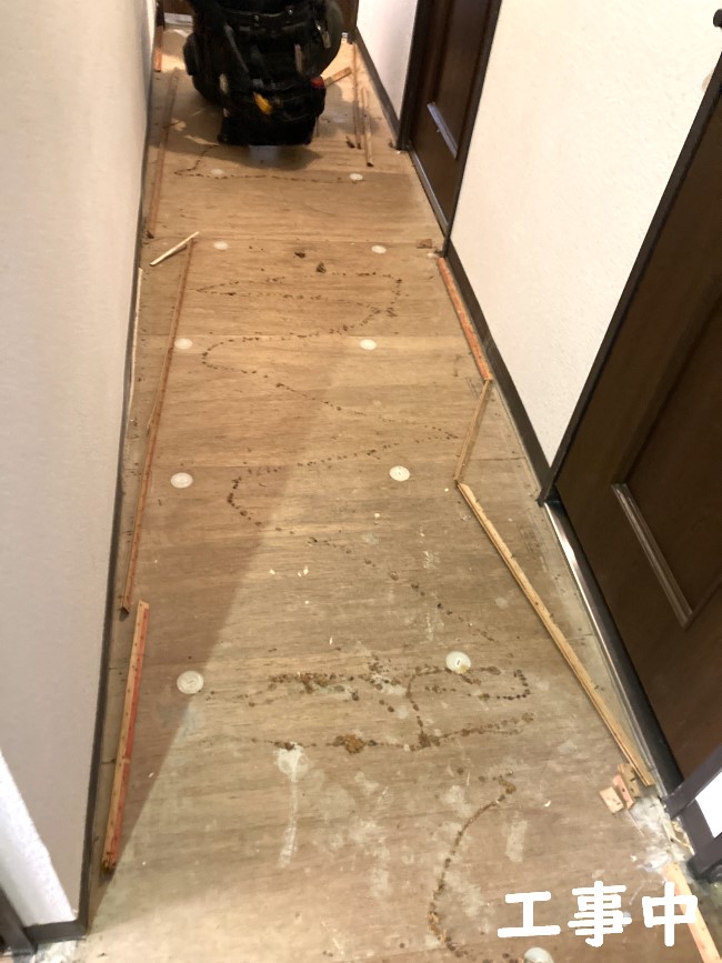 今回のお客様は、マンションの室内廊下をカーペットからフローリングに張り替えご希望です。