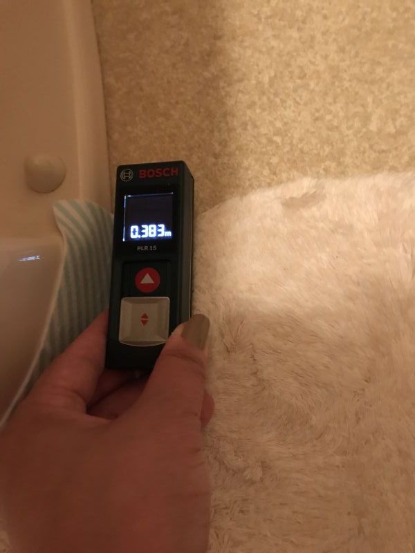 なので、ネジキャップが2つあると思いますが、壁から大きい方までのキャップを計ります。