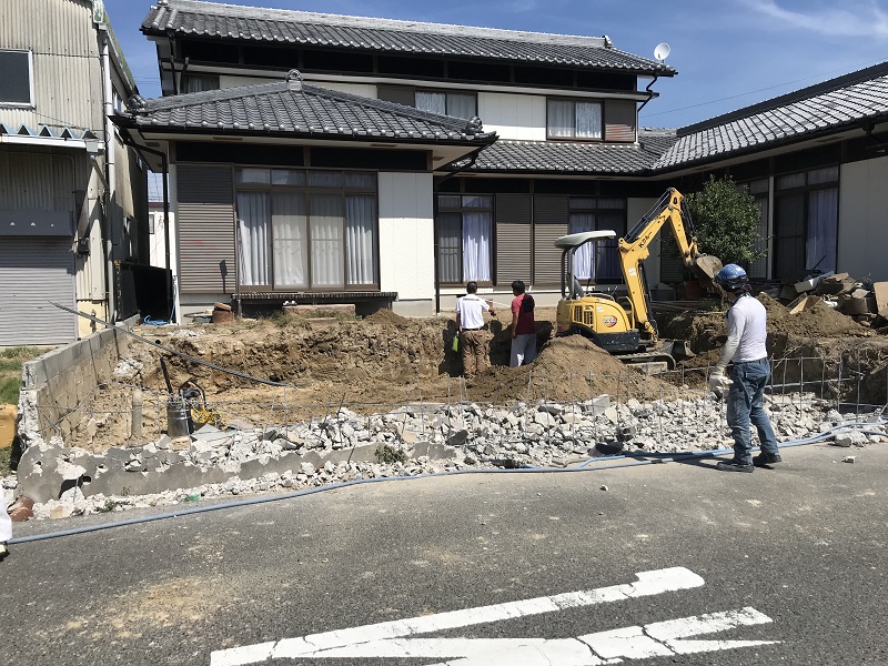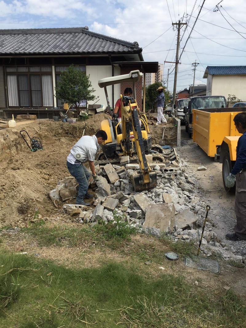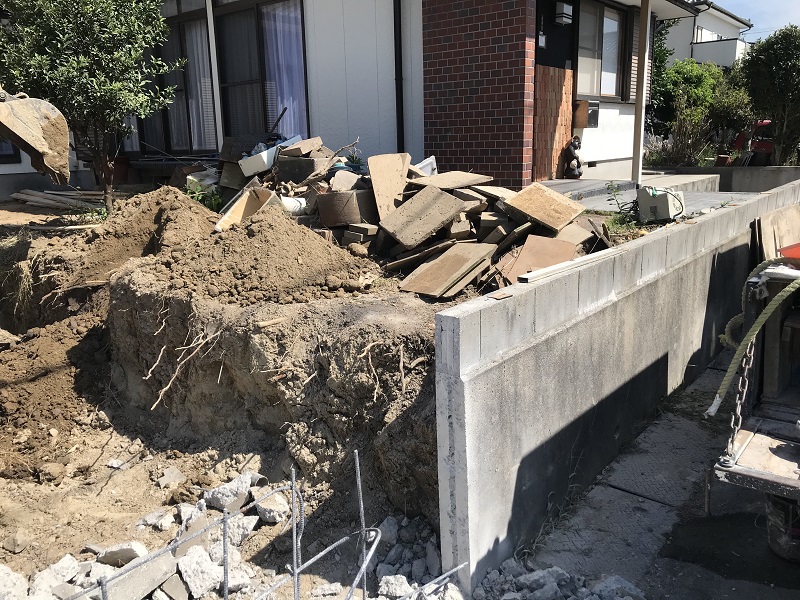 お写真は庭木伐採・掘削作業を終えてからの作業になります。