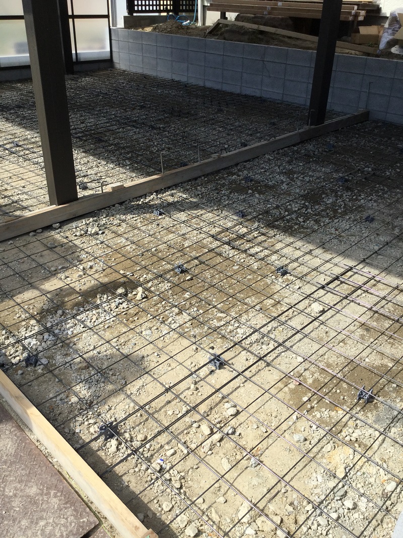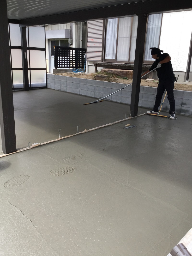 カーポートが完成しましたら、土間打ち作業に入ります。