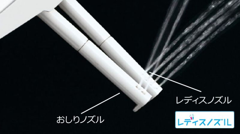 INAXは、ノズルが2本。おしり洗浄用ノズルとは別に女性にやさしいビデ洗浄用ノズルを搭載。