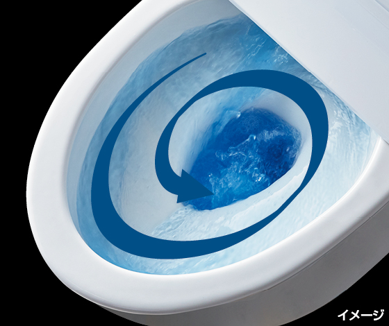強力な水流が便器鉢内のすみずみまで回り、少ない水でもしっかり汚れを洗い流します。