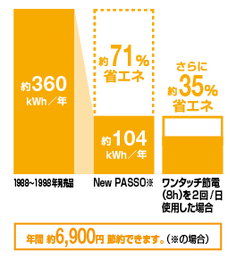 便座機能部をNewPASSOに変更することで、快適性と省エネがさらにアップ↑↑