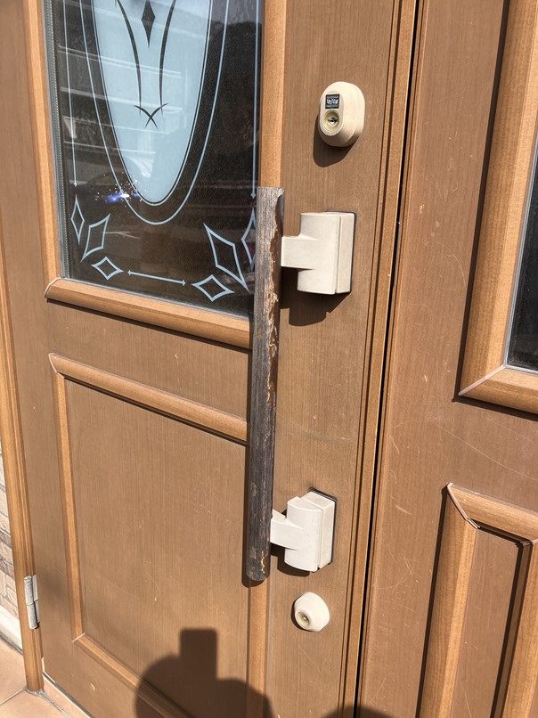 約20年間使っていた玄関扉の把手の部品が破損し、使用時にぐらつく状態でした。