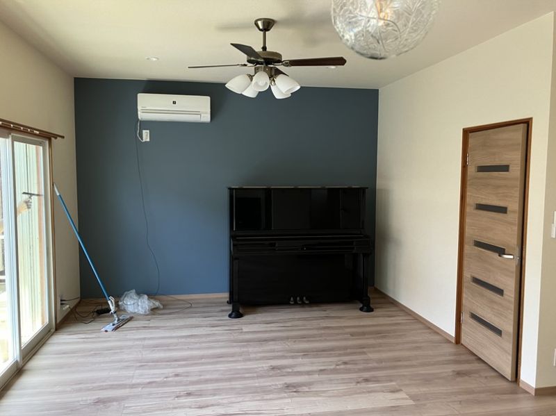 エアコン設置面の壁はアクセントクロスにすることで、引き締まった印象になりました。