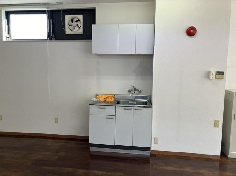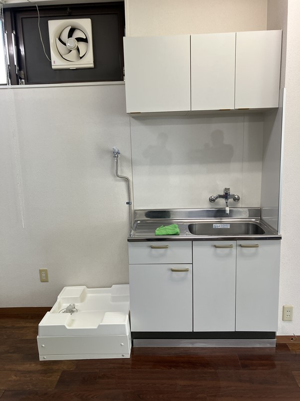 元々設置されていたミニキッチンの左隣に洗濯機を置けるよう工事させていただきます。