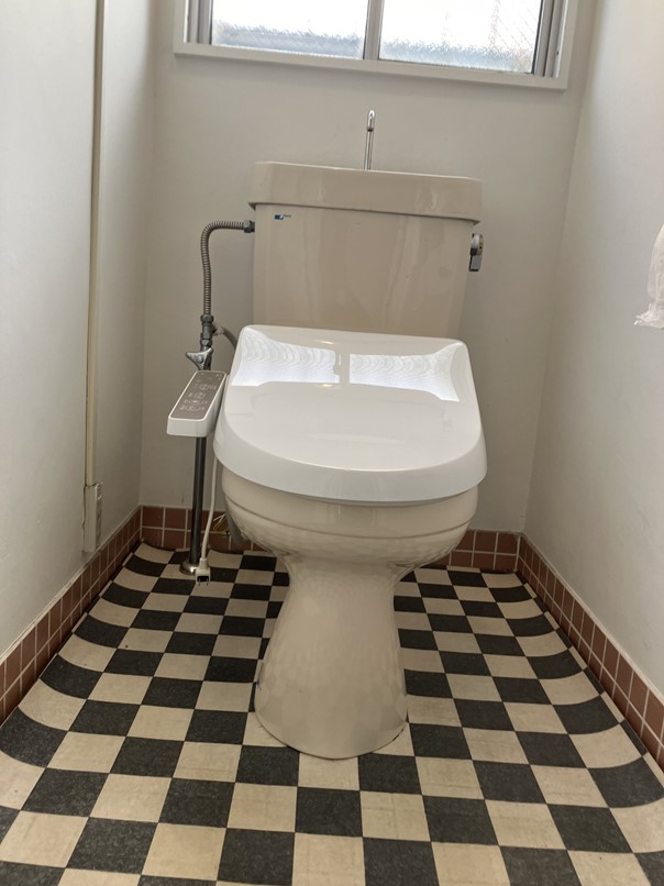 後付けで取り付けたと思われる便座部分は本体と色が合っていませんでした。