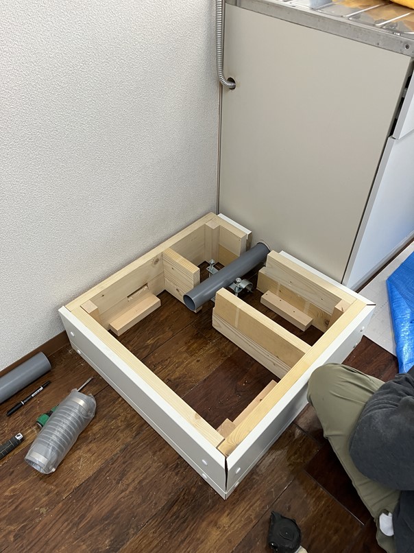 ミニキッチンから給排水を分岐させていきます。