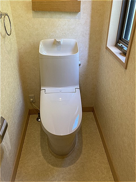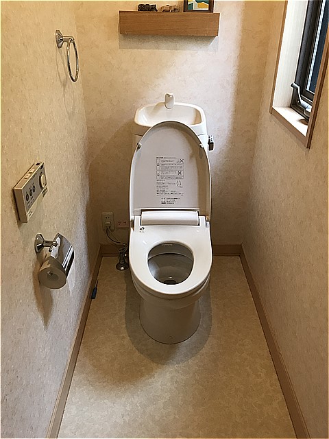 今回は、トイレのみの交換で内装のクロスやクッションフロアの張替は行っていません。