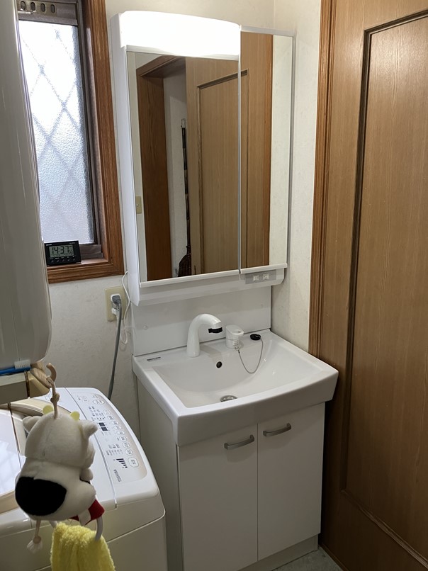 2面鏡仕様の新しい洗面化粧台が設置出来ました。小物はスッキリ収納でき、収納力もグンとUP⤴です。