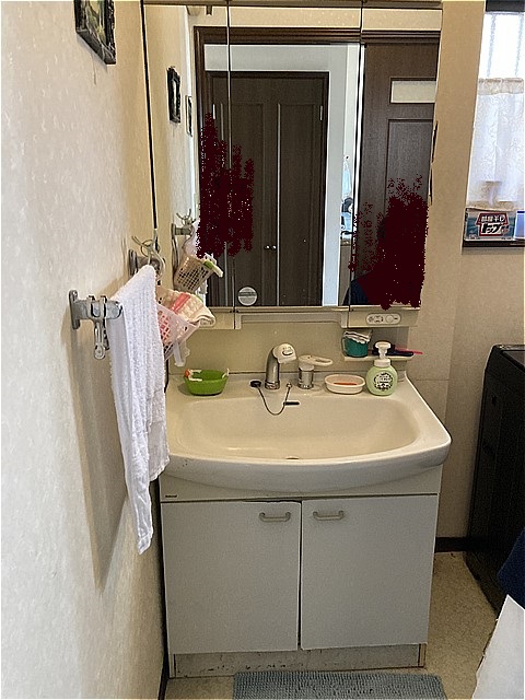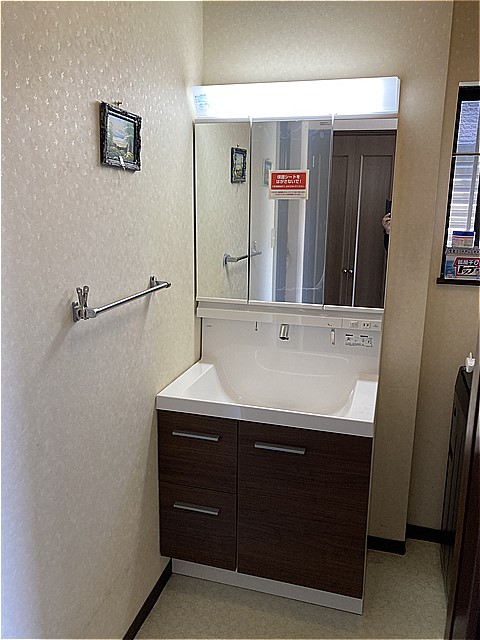 既設と同じ3面鏡仕様の新しい洗面化粧台を設置しました。