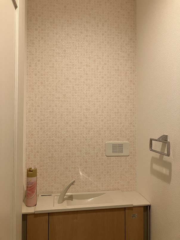 【クロス/フィルム貼り、シューズボックス撤去、タオルリング/紙巻器交換】