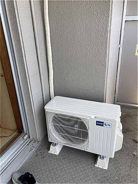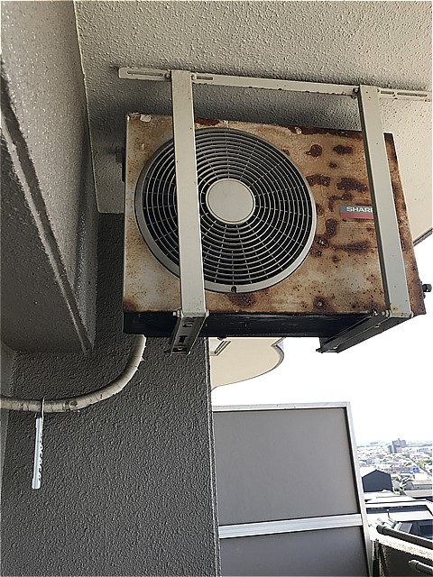室外機がベランダの高架タイプで設置されておりました。
