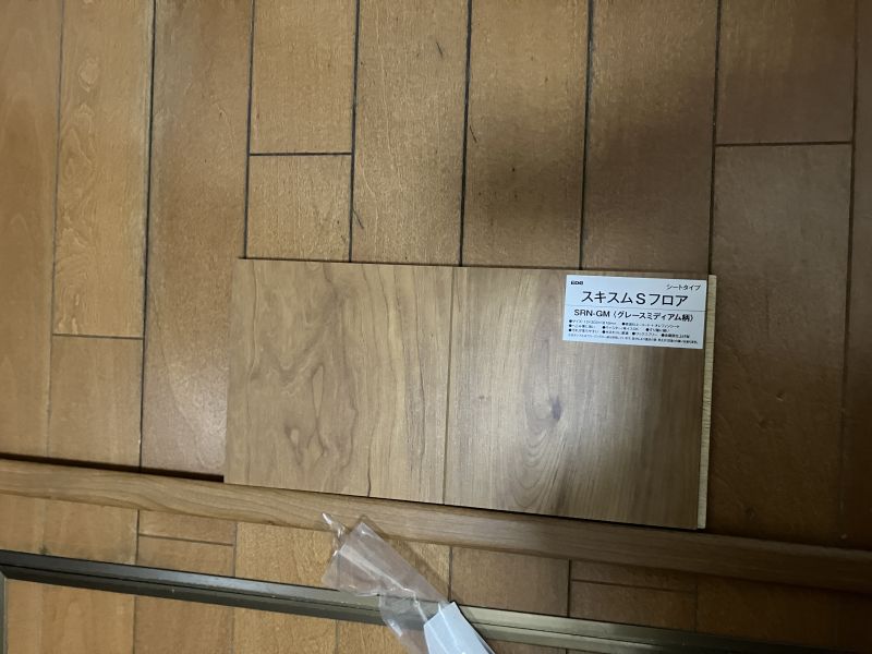 フロア材も見切り材も画像のものが一番違和感が無かったので、この色で決まりです!