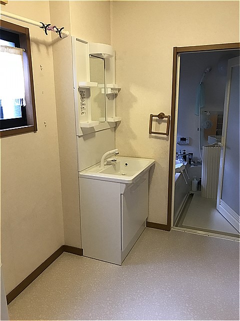 同時にクッションフロアの張替もし、洗面空間としての改装をしております。