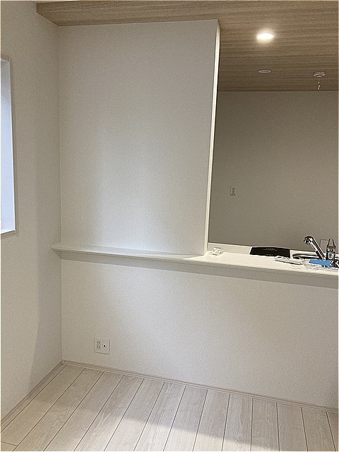 キッチン前のよくある壁になります。
