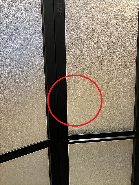 ドアの樹脂パネルにひびが入ってしまっています。
