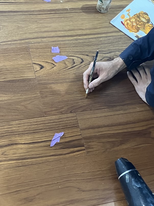 最後は筆書きで木目を再現していきます。