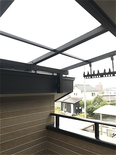 元々設置されている物干し掛けは、雨でぬれてしまうと困っておいででした。