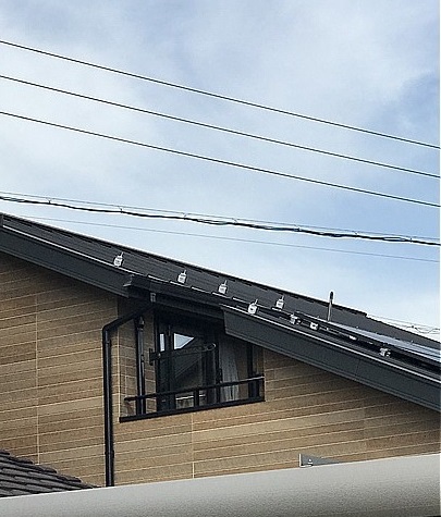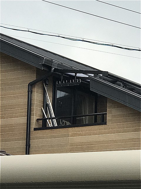 台風で飛ばされてしまい、金具のみ屋根に残ってしまったとの事。