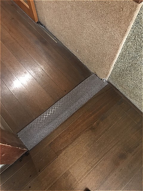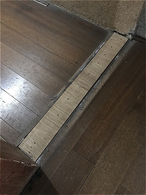 増築により廊下の板張り方向が違うところを無理やり隠したのでしょうね(^^;)