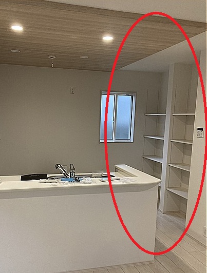 造り付のキッチン横収納に扉がなく、中が丸見えになっているのが嫌だとのお話でした。