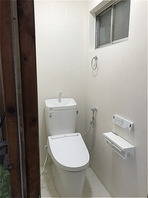 トイレ自体も古く、入口の扉も併せてトイレ空間のリフォームのご希望がございました♪