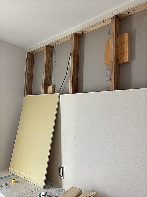 その後、新たにクロスを貼って、吊戸設置の準備OKです🎵
