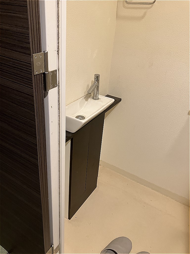 手洗いキャビネットが設置されていましたが、使わないとのことで撤去させていただきました。