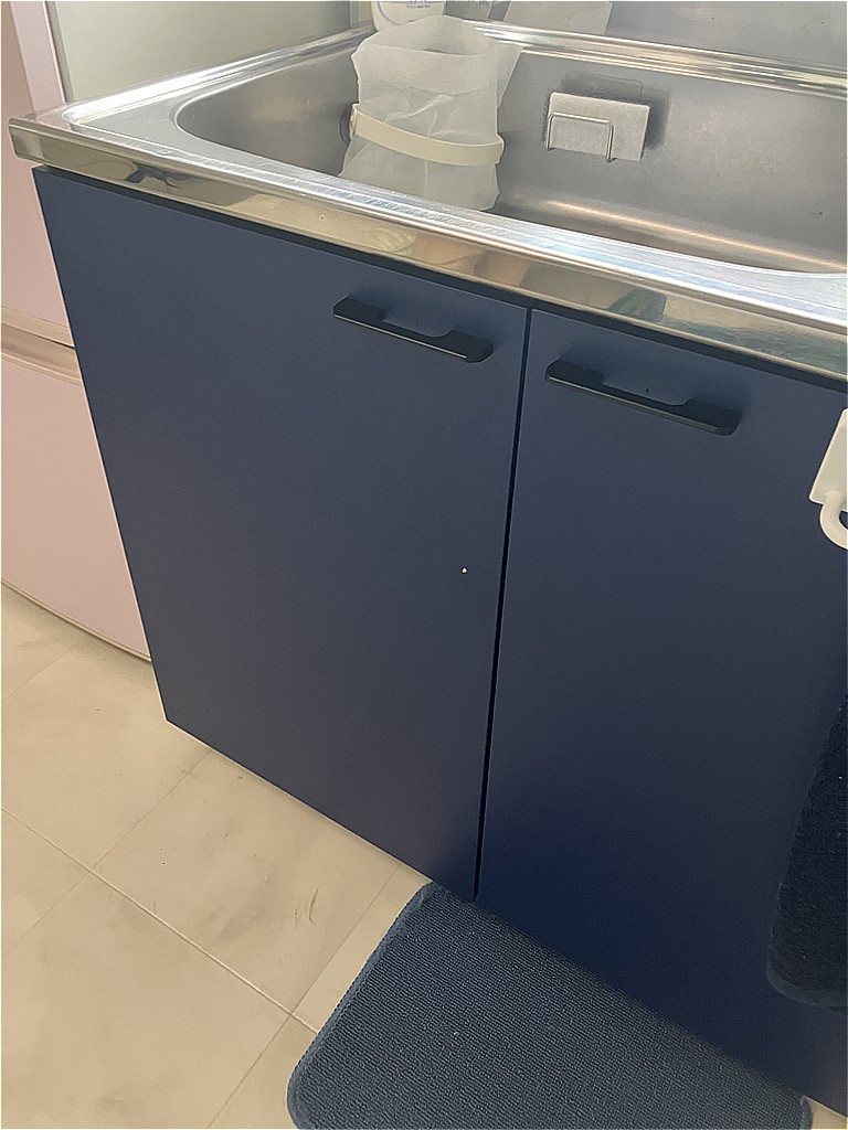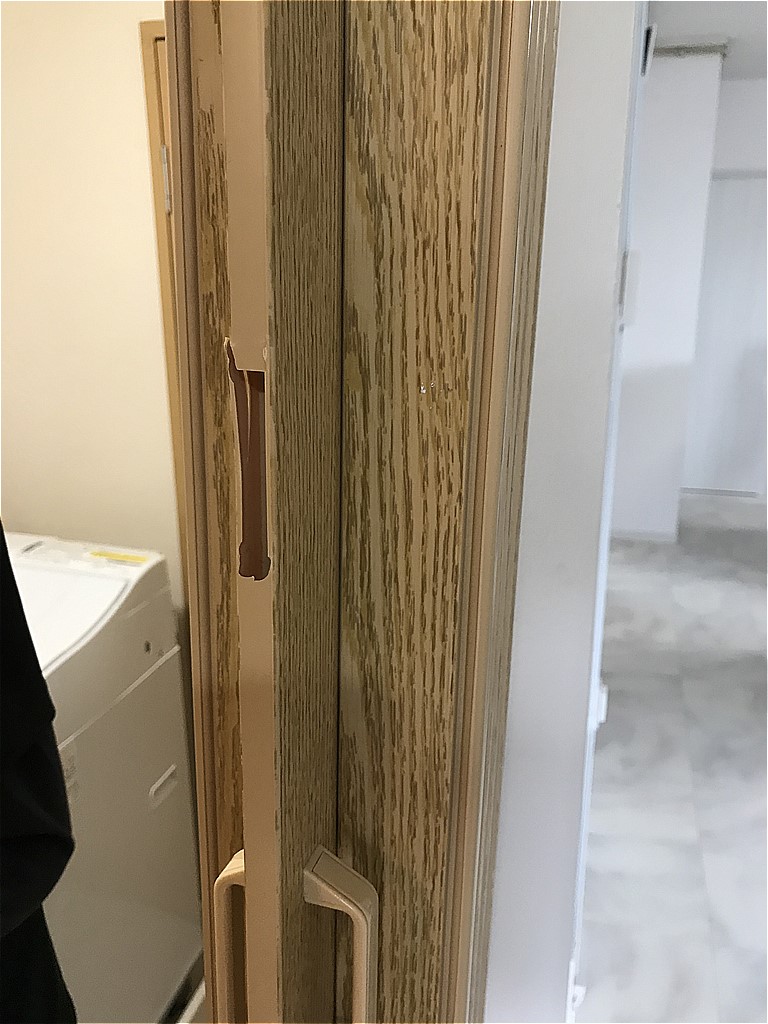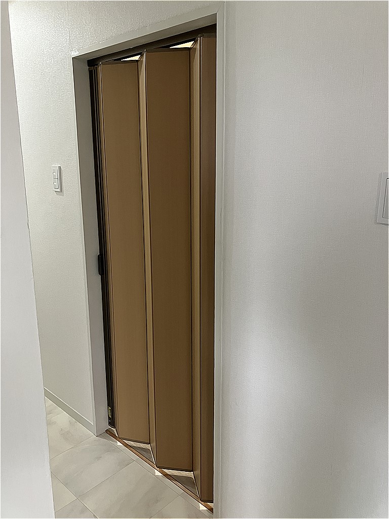 今回はアコーディオンカーテンの取替と、キッチン扉のリペアです。