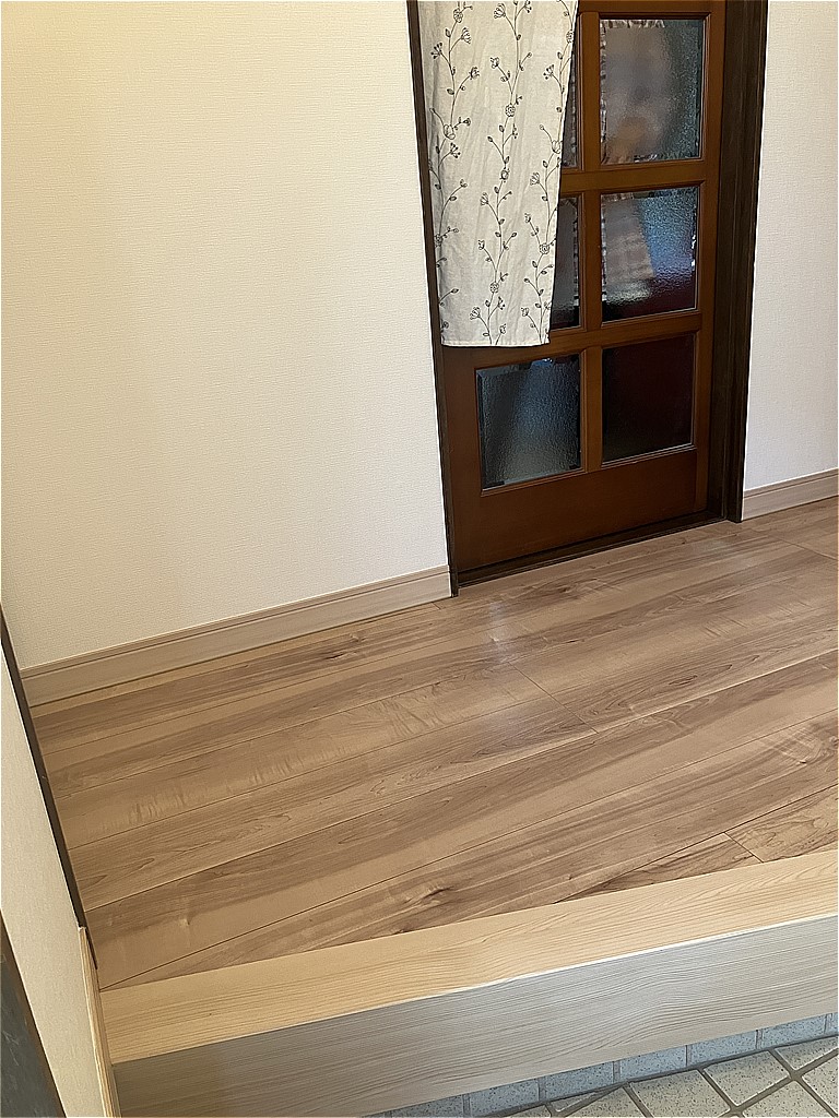 既設床は落ち着いた感じの少々濃いめの色合いのため、奥の方は少し暗く感じます。