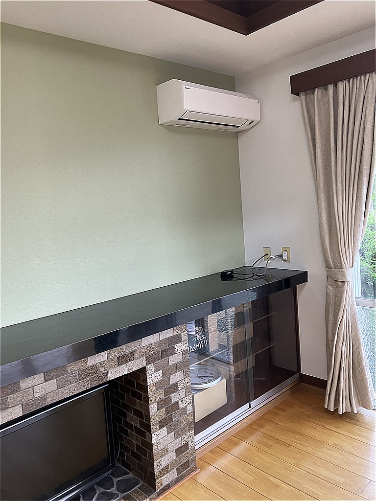 エアコン設置面の壁は、お客様のご要望でアクセントクロスにさせて頂きました。