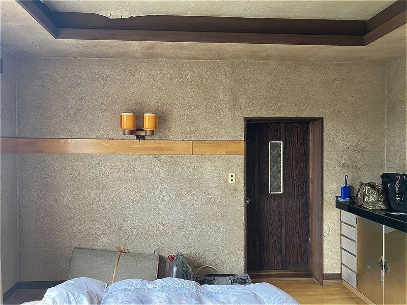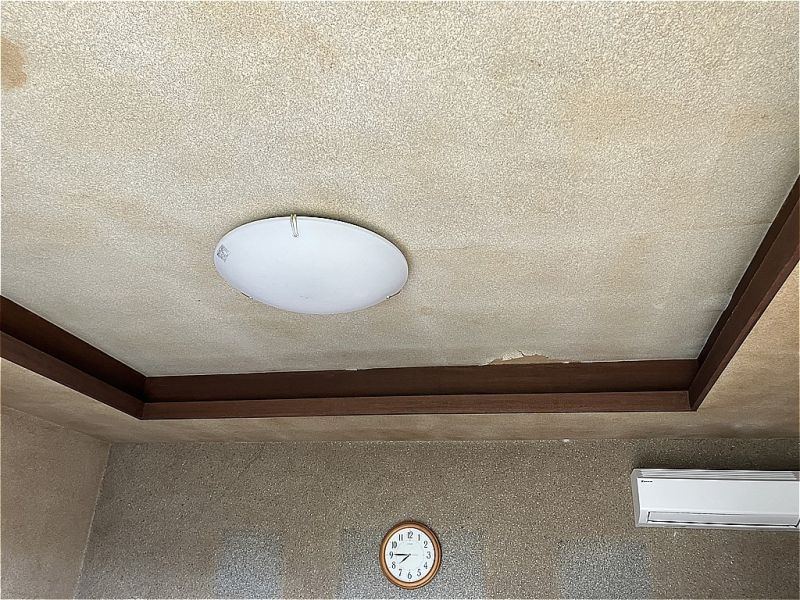 天井は一部剥がれ落ちてしまい、壁も部分的に変色の跡が見られます。