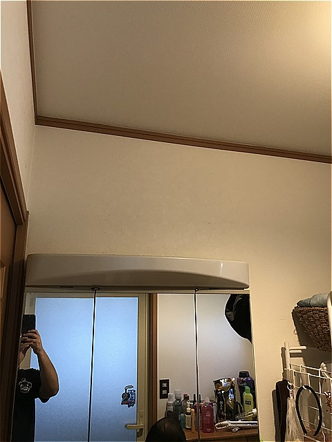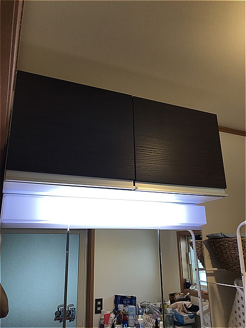 ミラーキャビネットの上にアッパーキャビネットを設置したので収納力も大幅にUPです(^^♪