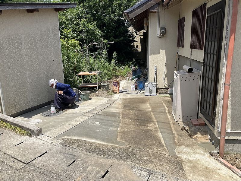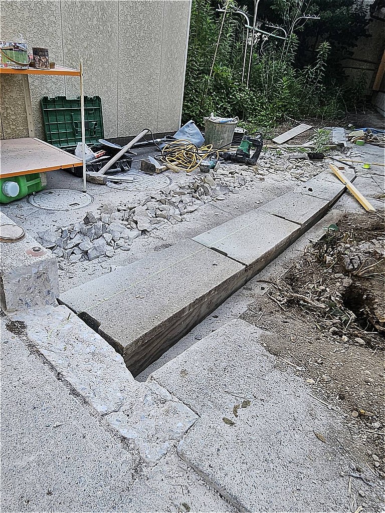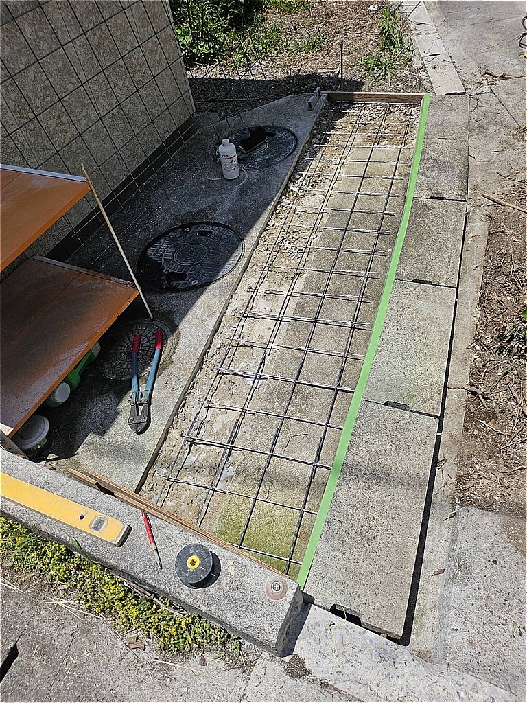 駐車場のない戸建てを購入されたお客様から、庭に乗り入れるためのスロープを作ってほしいとのご依頼です。