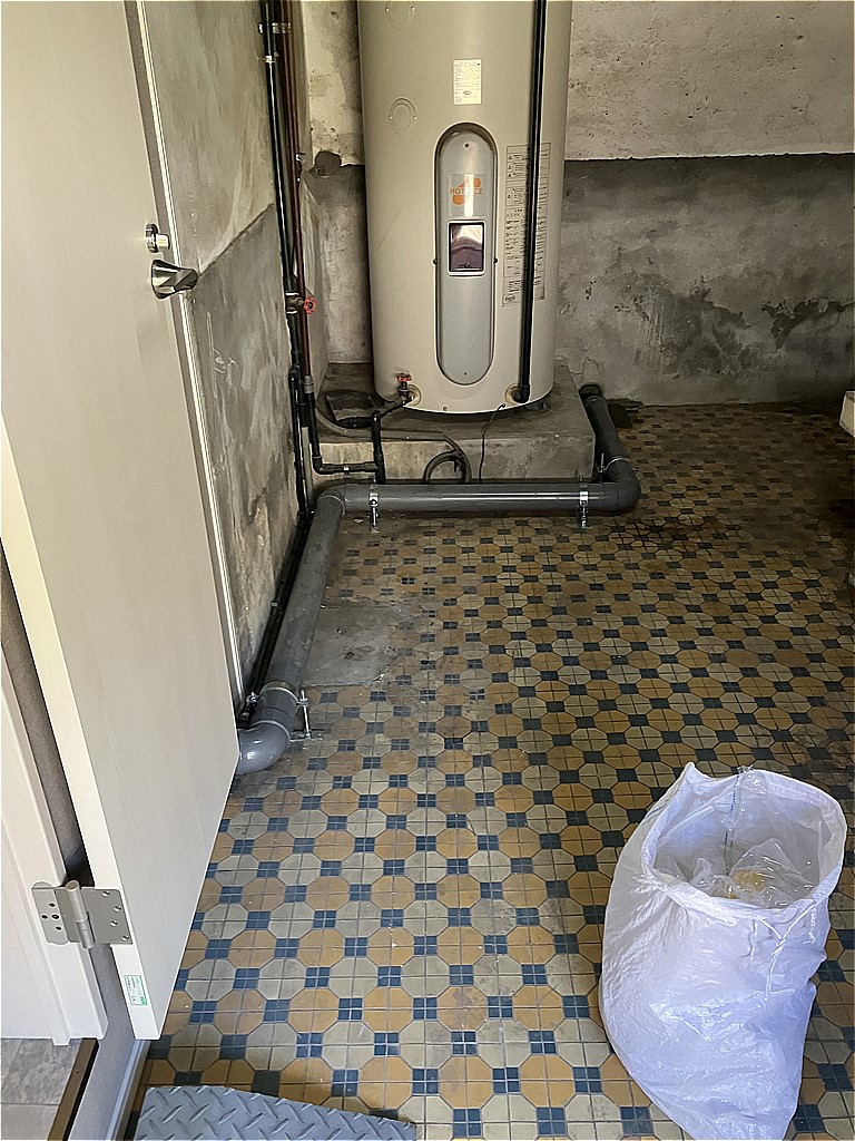 排水管は出来るだけ邪魔にならないよう、壁沿いに設置して汚水桝に接続させていただきました。