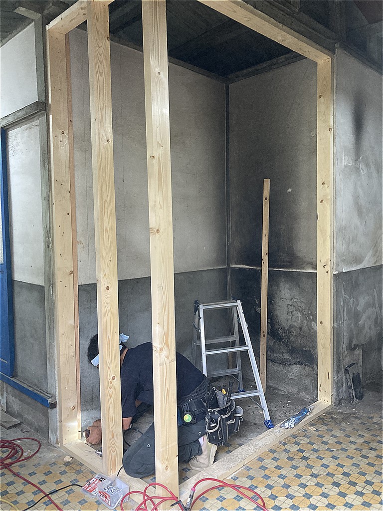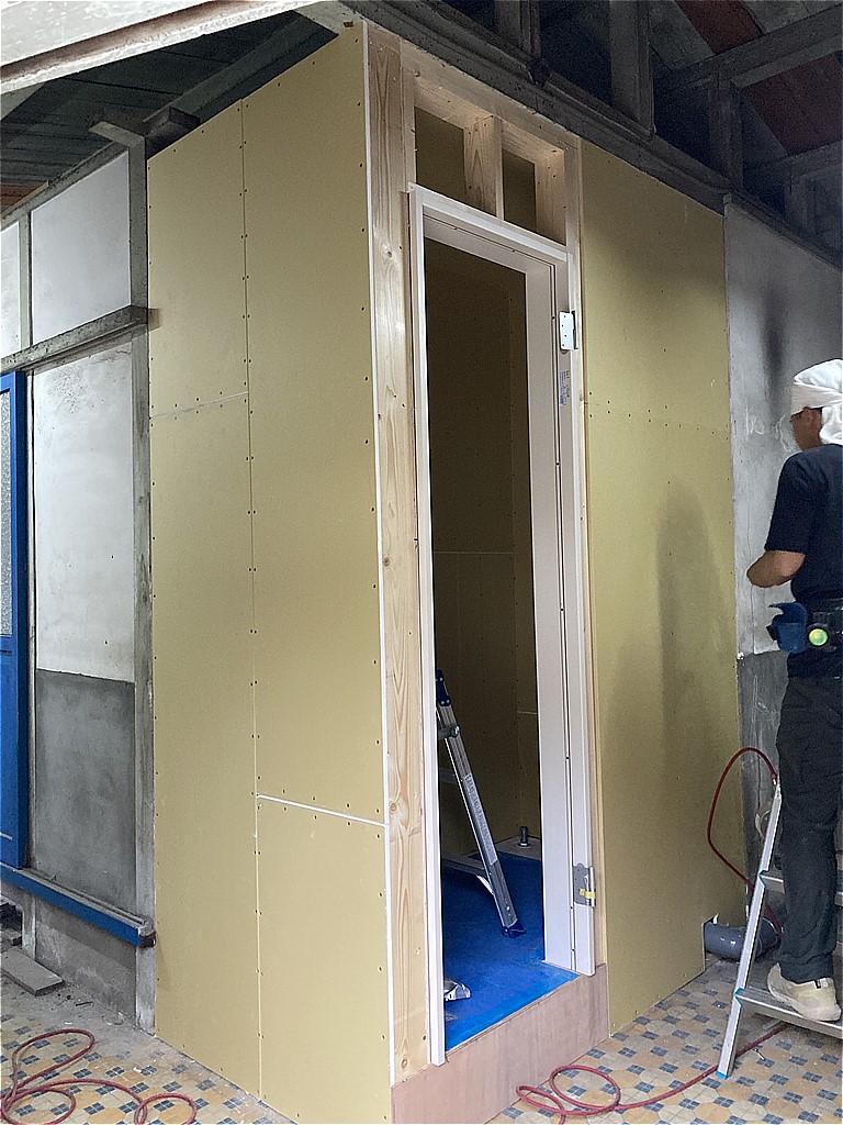 今まで物置スペースとして使われていた一角をトイレスペースにしていきます。