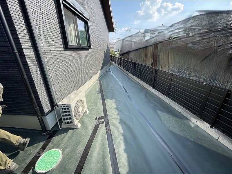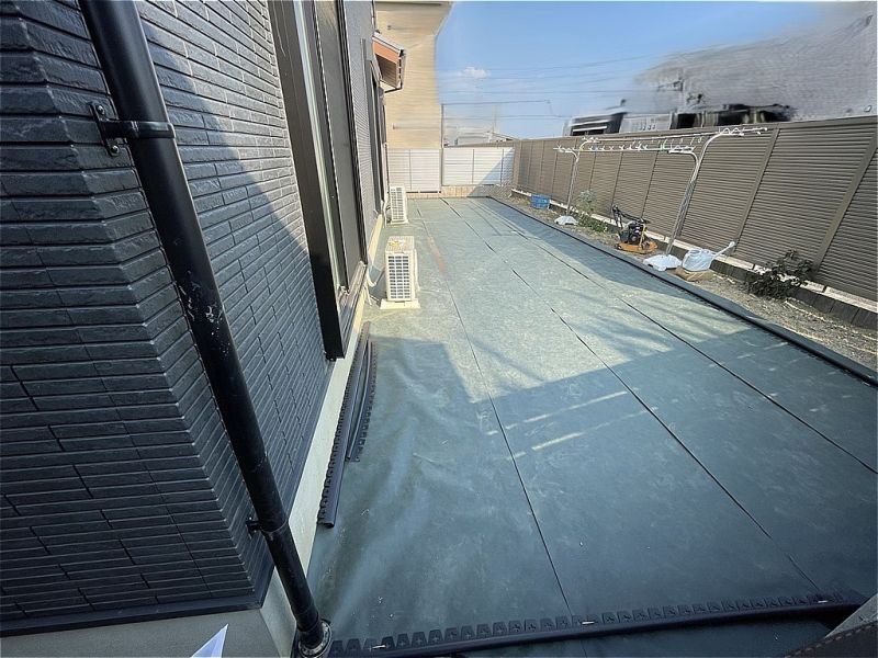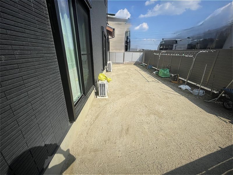 東と西面に砂利、南面に人工芝を敷設していきます。